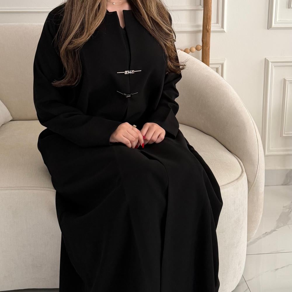 - اسم المنتج: عبايه قماش كريب كوبا 1 اسود ساده أزرار إماميه قصه A